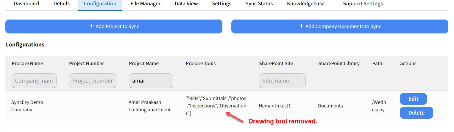Edit Project Button: If you've already added all the tools to your project, the "Edit Project" button won't work. Similarly, if you're using company documents sync or folder sync options, you won't be able to edit your project.