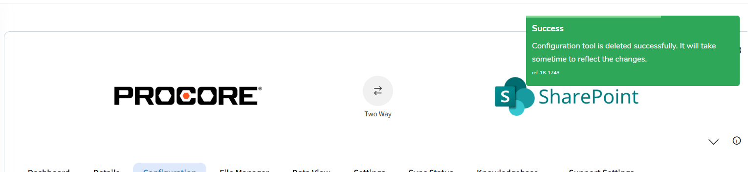 Please note: This will not delete any data from Procore or SharePoint side. It will only break the sync for specific tool and remove its information from our database.