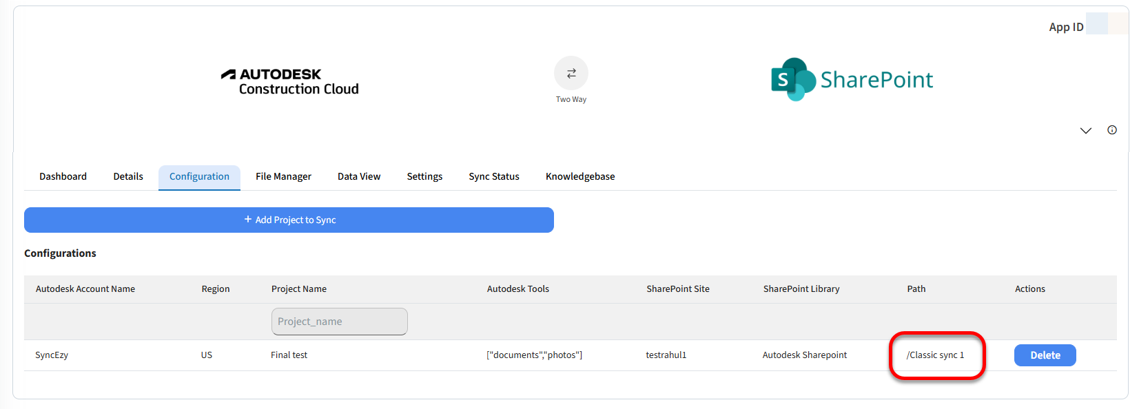 syncezy@yourcompany.com for example and use this account to connect Autodesk and SharePoint in your integration. This will ensure you can easily identify what synced changes our integration has made. Please ensure any new service accounts you set up have full admin permissions on the Documents, Photos, and RFIs tools for all projects you want to sync in Autodesk and also full read/write permissions on the applicable SharePoint account/sites.