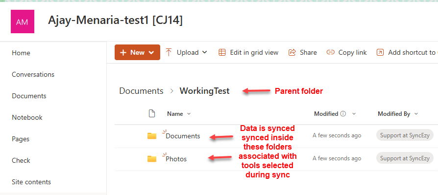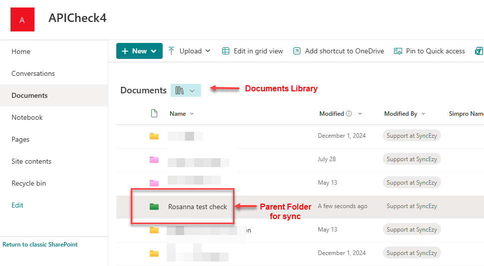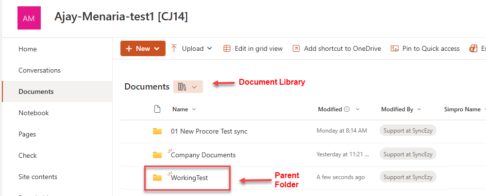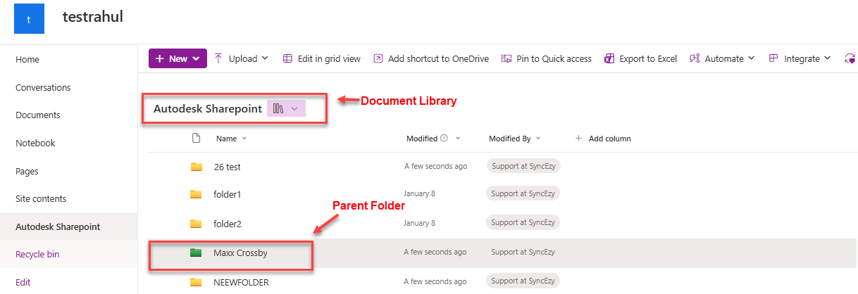 Once you click on "Add Project" the project will be added to the configurations and selected folders will be created in your chosen location in SharePoint. (Refer to the screenshot below)