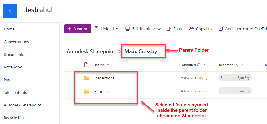 With this feature, instead of creating a new "Documents" folder layer inside the parent folder, the integration will sync all folders from the documents tool directly to your chosen path in SharePoint, maintaining the original structure. This feature currently supports the Documents tool and allows seamless syncing of your Autodesk Construction cloud project folders to a selected SharePoint location.
