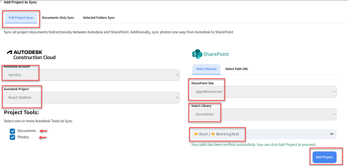 9. Click on Add Project when you get the message "Your path has been verified successfully. You can click Add Project to proceed.".