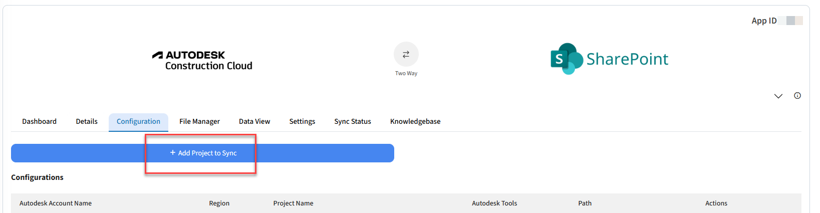 1. Click on the "Add Project to Sync" button under the Configuration tab