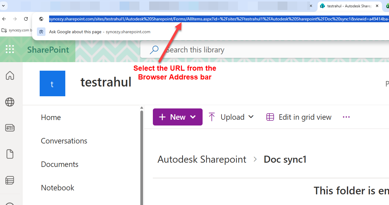 Create a folder in SharePoint with the project name or any identifiable name where you want to sync your project.