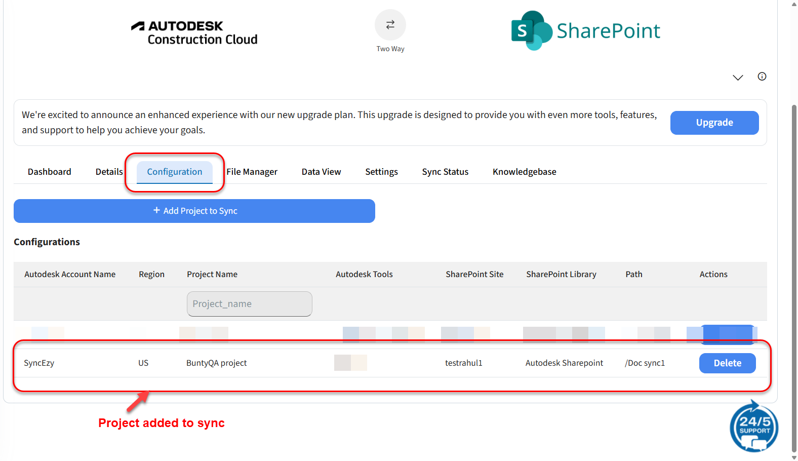 1. Click on the "Add Project to Sync" button under the Configuration tab