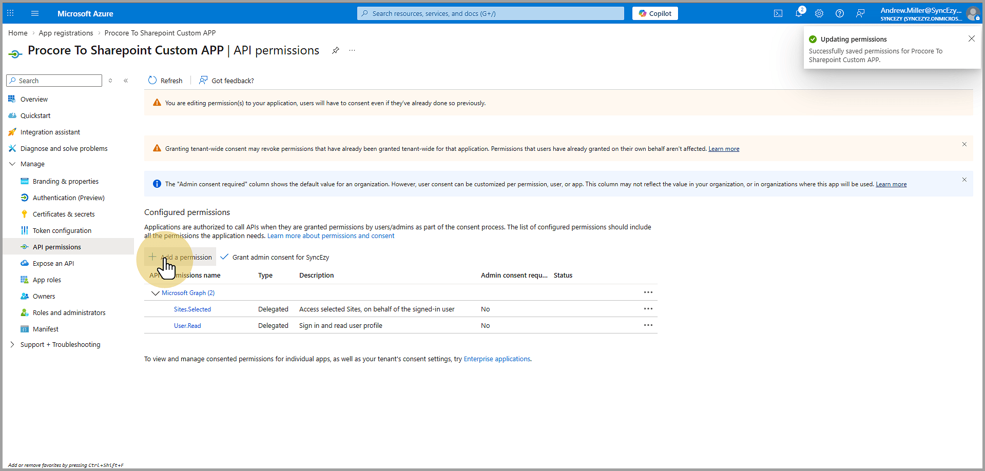 38. Add /permissions in the end of URL and then click "Run query". Once the query is executed, proceed to authenticate the app on the SyncEzy portal.
