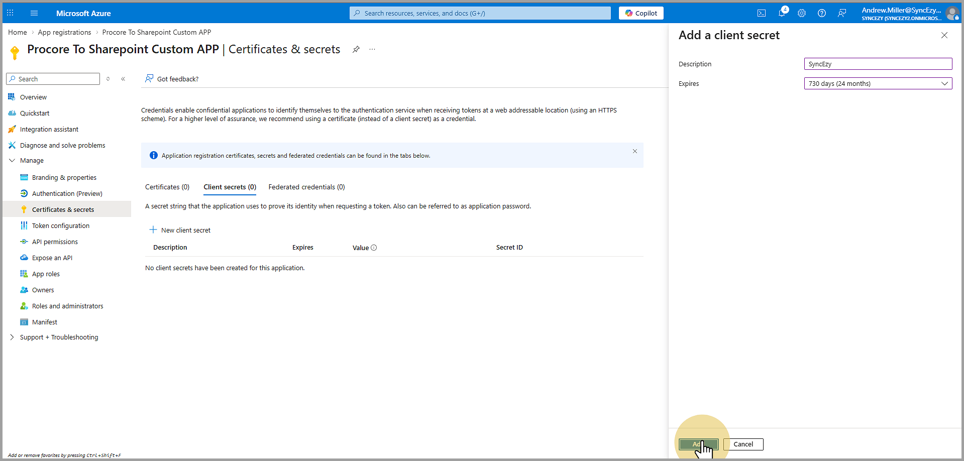 25. Copy the Client ID Key and store it securely, as it will be required later.