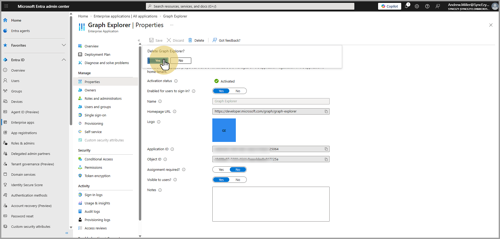 To delete navigate to https://entra.microsoft.com/ and select Graph Explorer app under Enterprise apps.