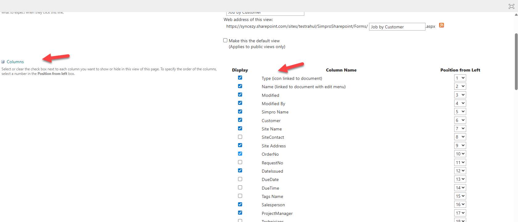 A new window will open. Scroll down and check the boxes for the Simpro metadata columns you want to display.