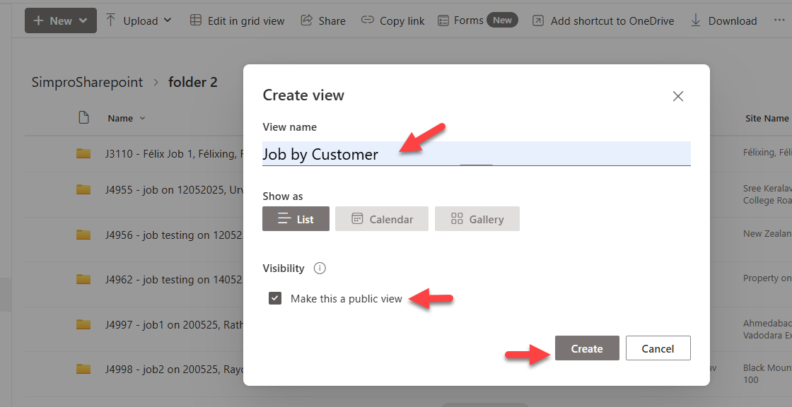 Name your view (e.g., "Jobs by Customer") and check Make this a public view so your team can access it.