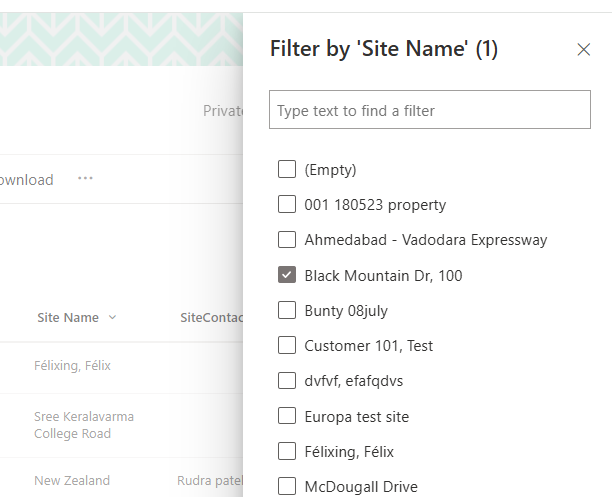 Check the box next to the specific Site Name you want to view (e.g., "Black Mountain Dr, 100") and click Apply from bottom. .