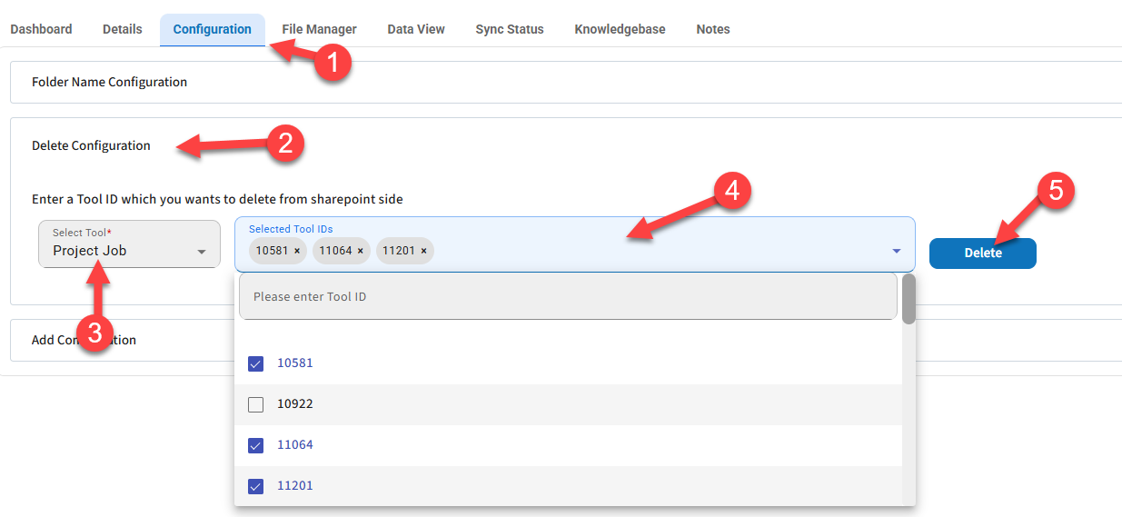 Find the Delete Configuration panel (it will be in an accordion style). Click to expand it.