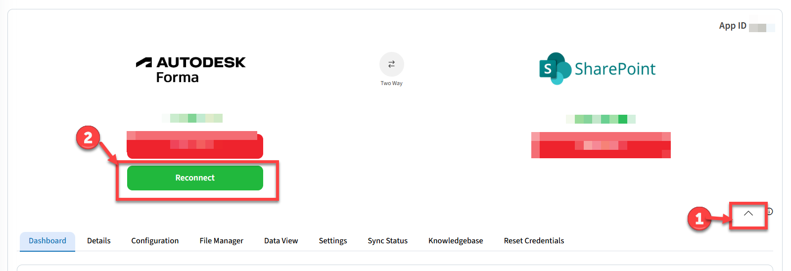 2. Click on the green “Reconnect” button under Autodesk Forma logo to re-authorize the account.