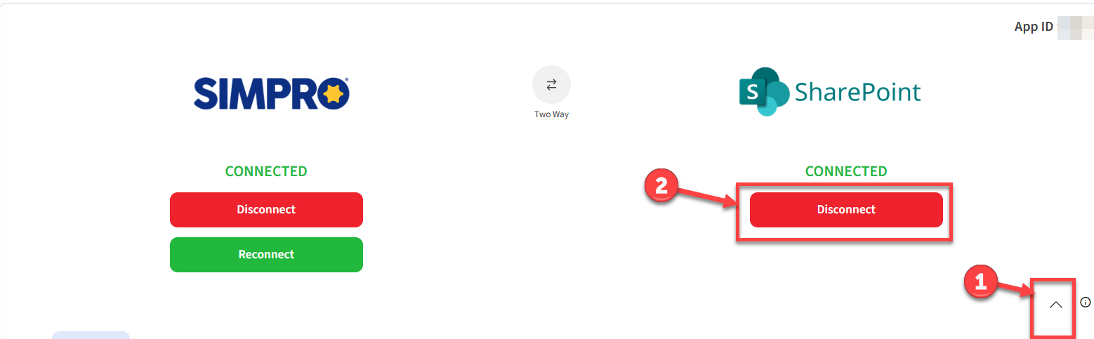 2. Click on “Disconnect” under SharePoint to re-authorize the account.