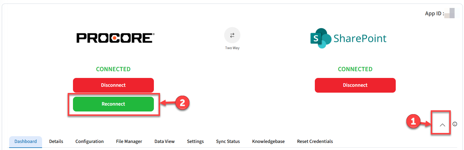 2. Click on “Reconnect” under Procore to re-authorize the account.