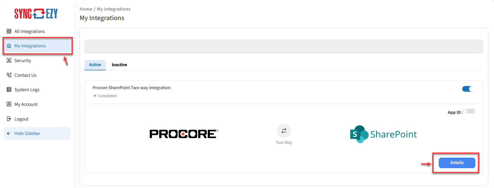 To reauthenticate please log in to integrations.syncezy.com and then navigate to My Integrations > Click on