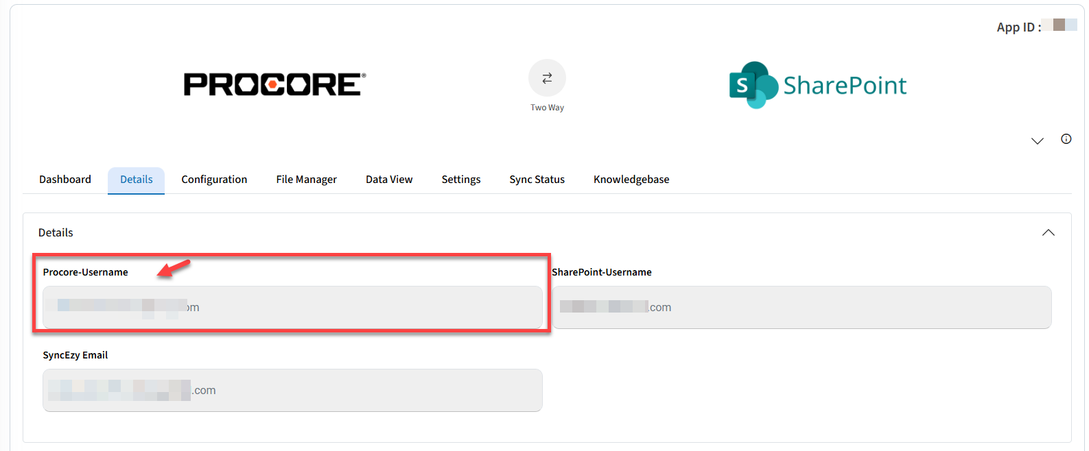 4. Once Reauthenticated you can see the updated connected account details in Procore Username field under the