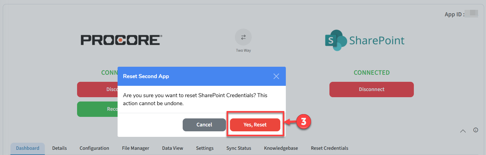 3. Click on Yes where it says "Are you sure you want to reset SharePoint Credentials?"