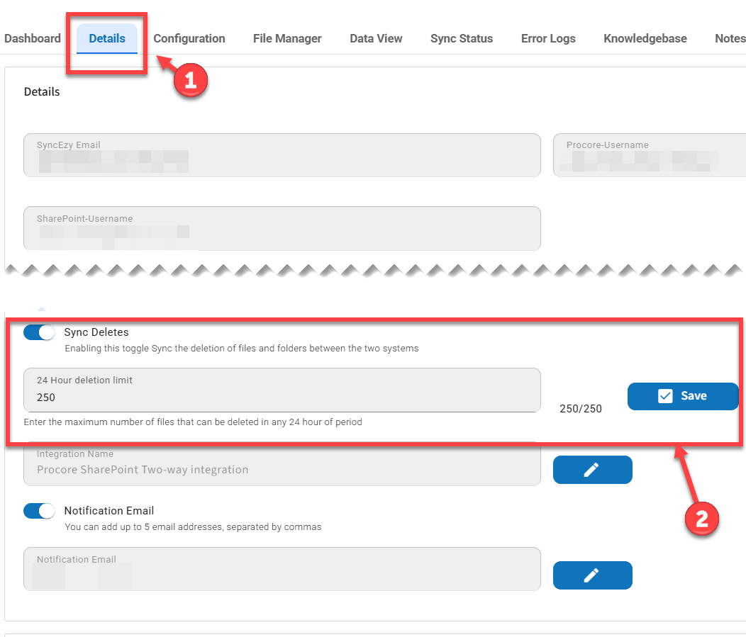What Happens When the Limit Is Reached: Once the predefined limit is hit, the system will automatically send you an email notification (to the notification email address, set up to 5 different addresses). This alert signifies that the deletion quota has been met, and any further deletions will not be synchronized until the limit resets. The email will also include the file paths of where the deletes were not synced.
