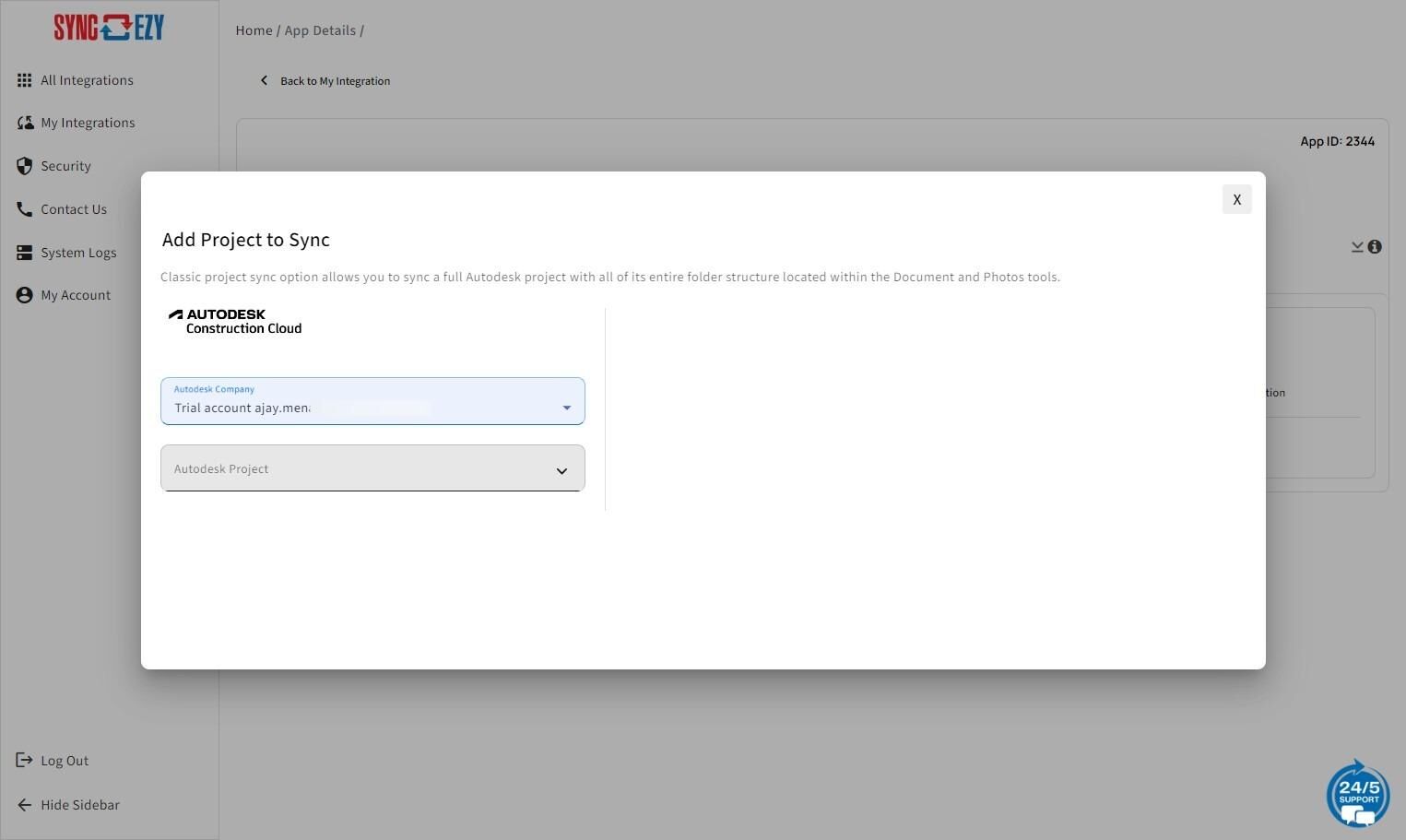 18. Click the "Autodesk Project" field to select the project