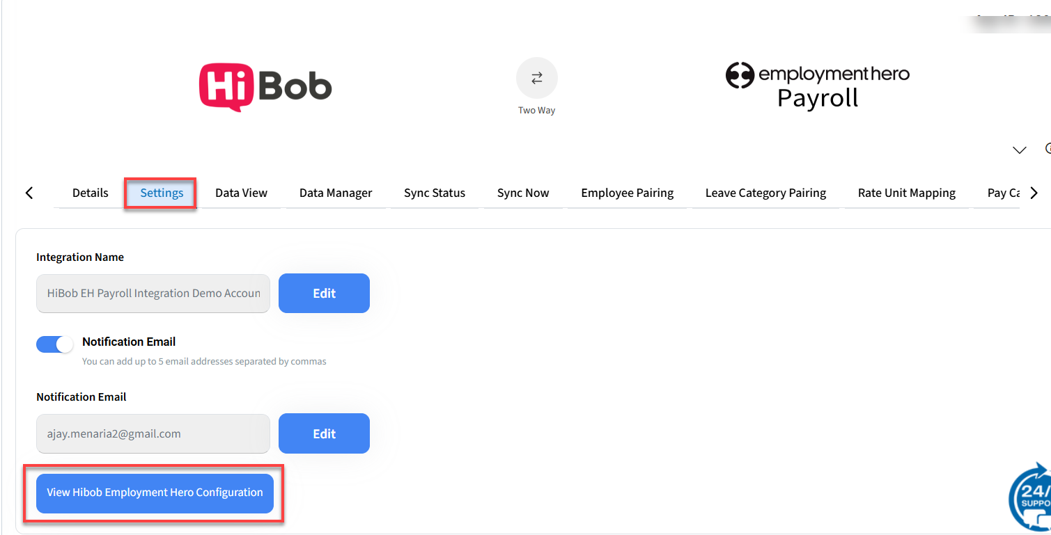 Open the HiBob Employment Hero Config button.