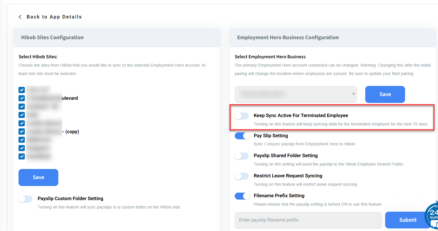 SyncEzy now includes a new feature that allows employee data to continue syncing for a limited period after termination. When enabled, this setting ensures uninterrupted access to important employee records—such as payslips—even after an employee has been terminated.