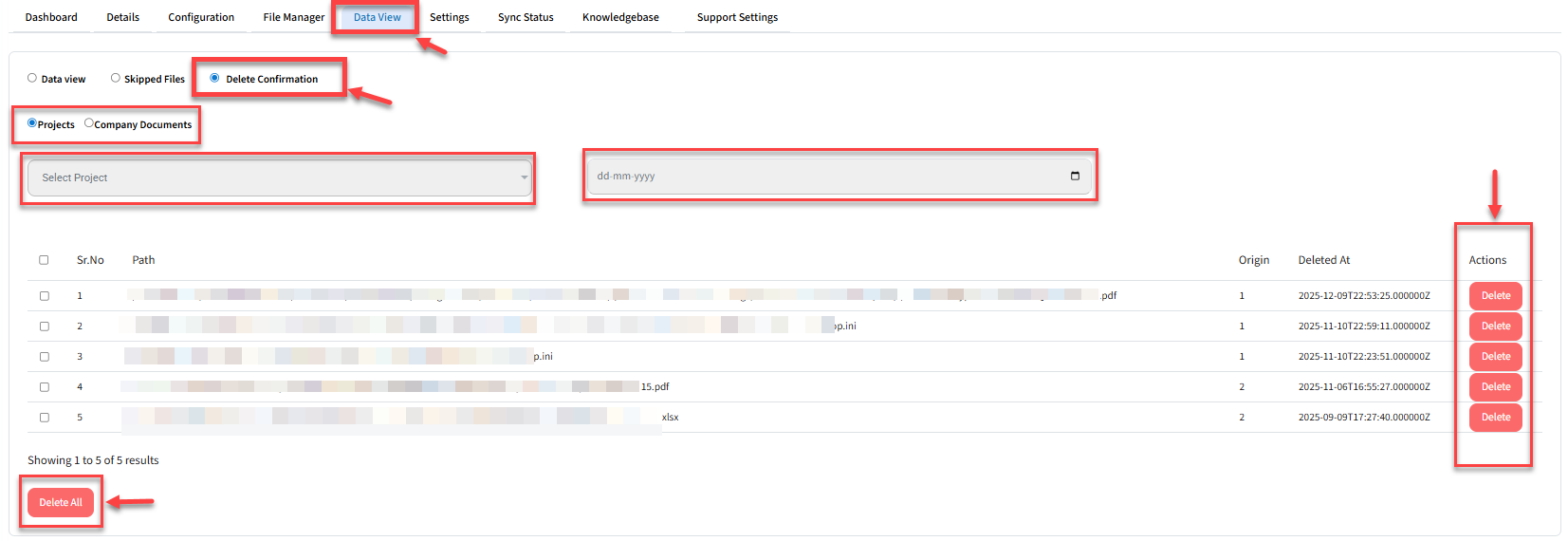 If a file or folder is deleted in one app, the deletion will not be replicated to the other app immediately. Instead, the action is paused until a user manually confirms it within the SyncEzy portal. ot sync any delete action from one app to other until confirmed by user from the portal .