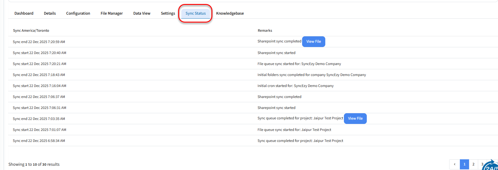You can view the sync status in this tab - success or failure. The sync runs every day and you will be able to see when it starts and when it completes.