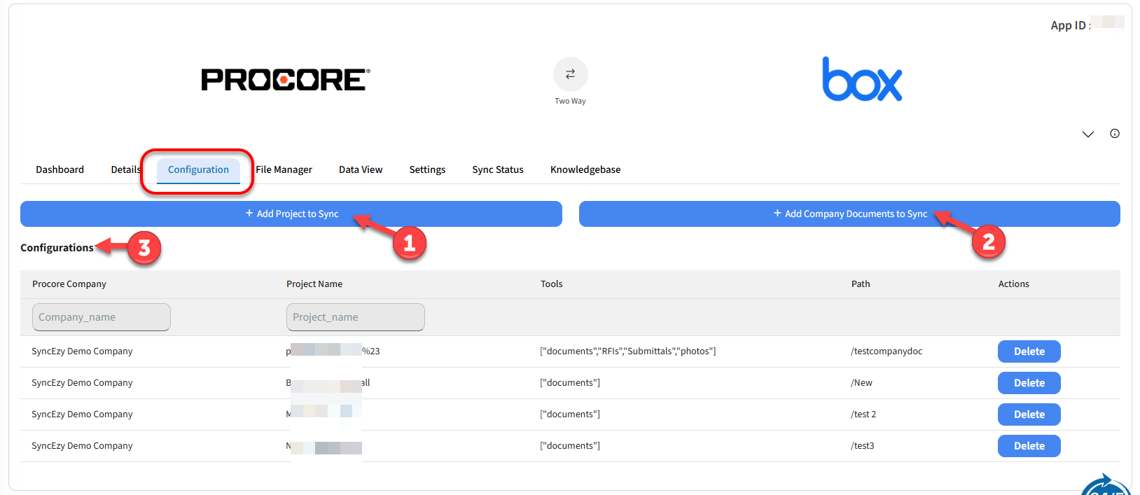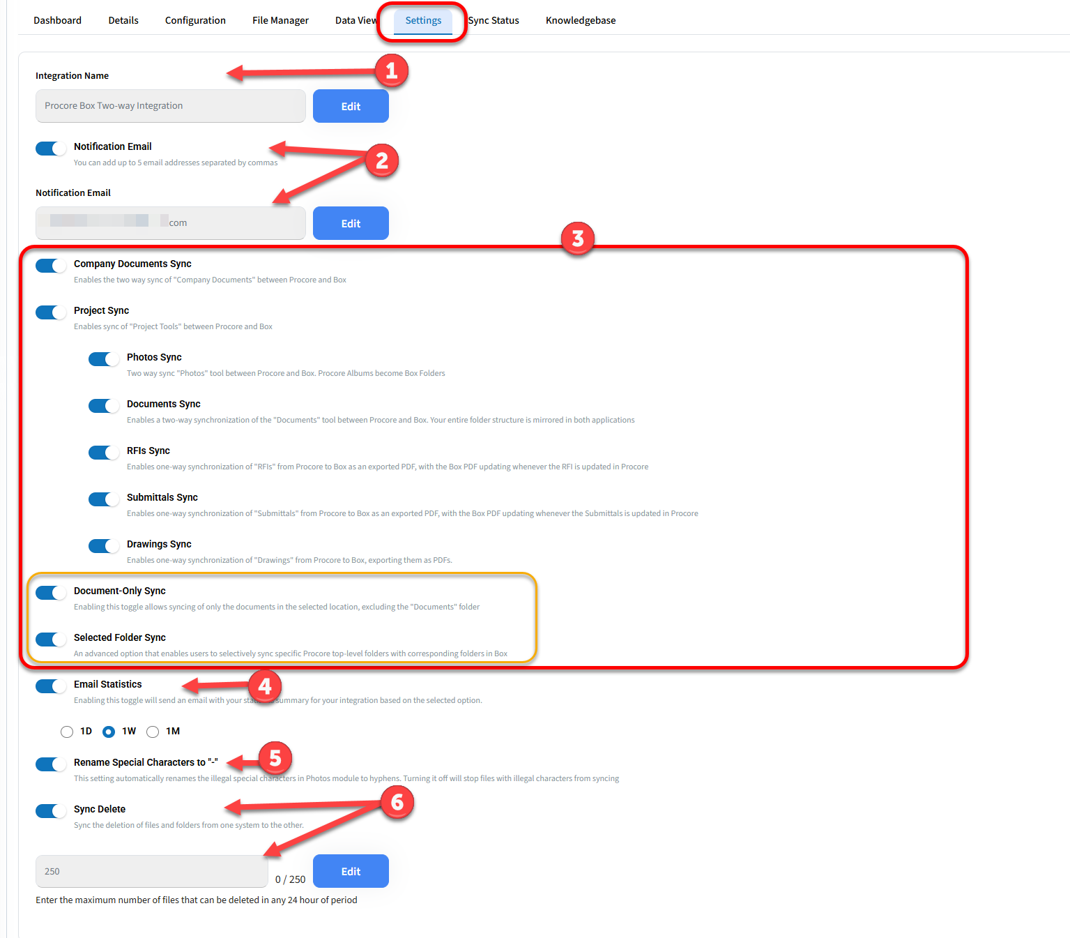 2 - This is a dropdown list of all the projects/companies (for company-level documents) you configured and added to the integration.