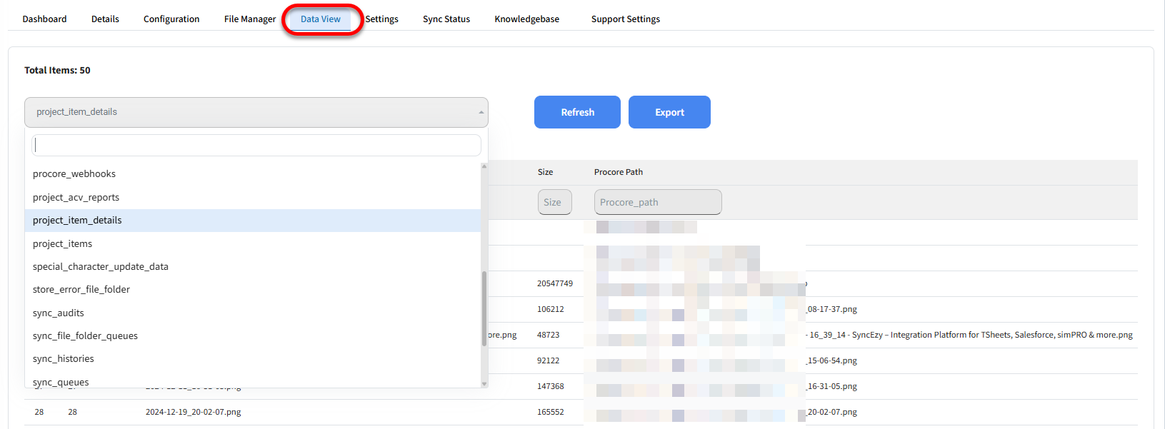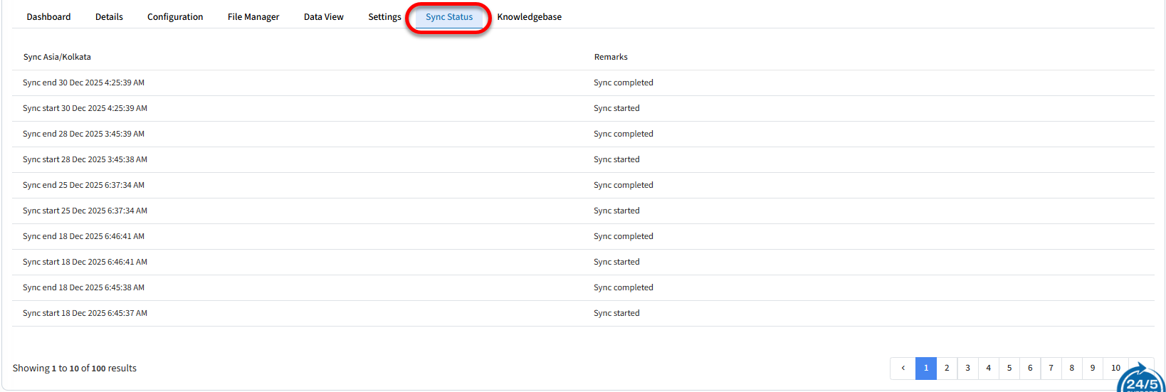 11 - Clicking on this small circled "i" shows the sync history of specific data item.