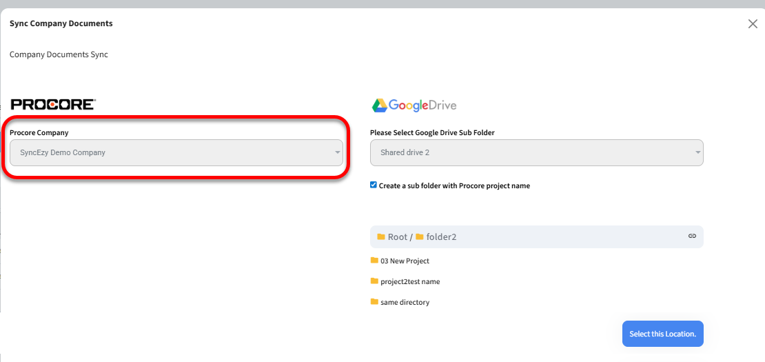 2 - This is a dropdown list of all the projects/companies (for company-level documents) you configured and added to the integration.
