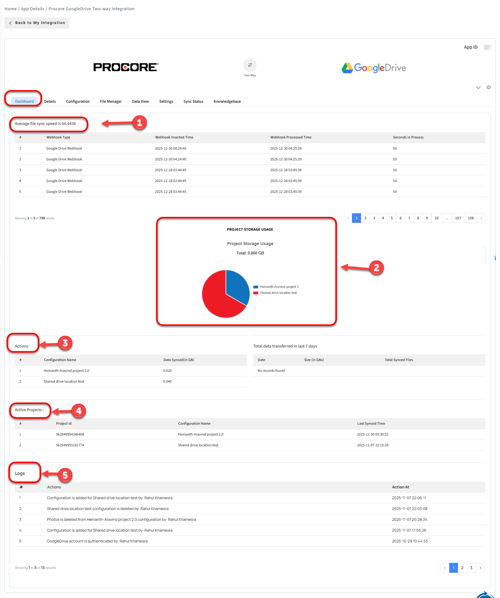 5 - This link provides direct access to the Google Drive location where syncing folders and files for the current navigated level are stored.