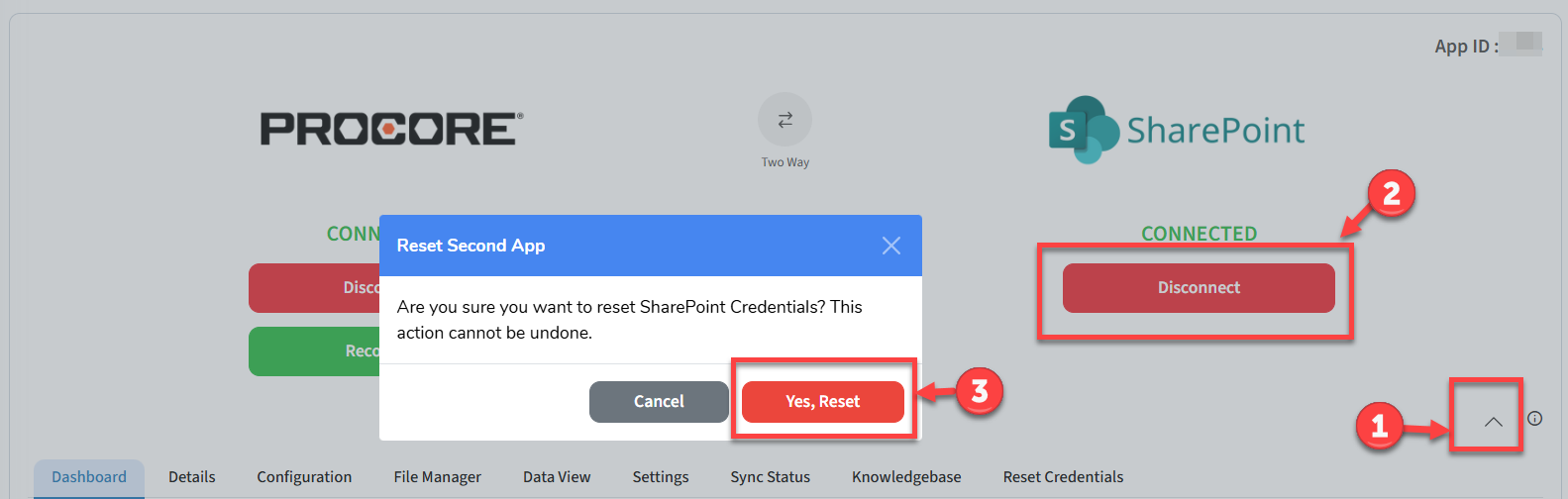 To re-authenticate Procore, please refer to the guided screenshot below.