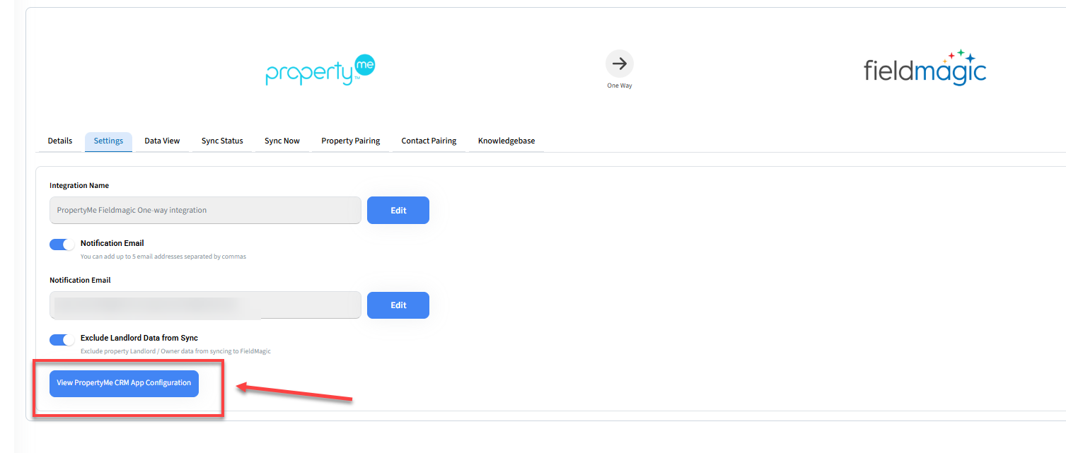 Go to Settings → View PropertyMe CRM App Configuration