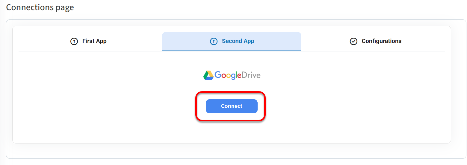 - Once the Simpro user is Authenticated, integration will ask you to connect to Google Drive. Click on Connect and then enter your Google Drive credentials. Please confirm if you have the right Google drive permissions to connect with the integration.