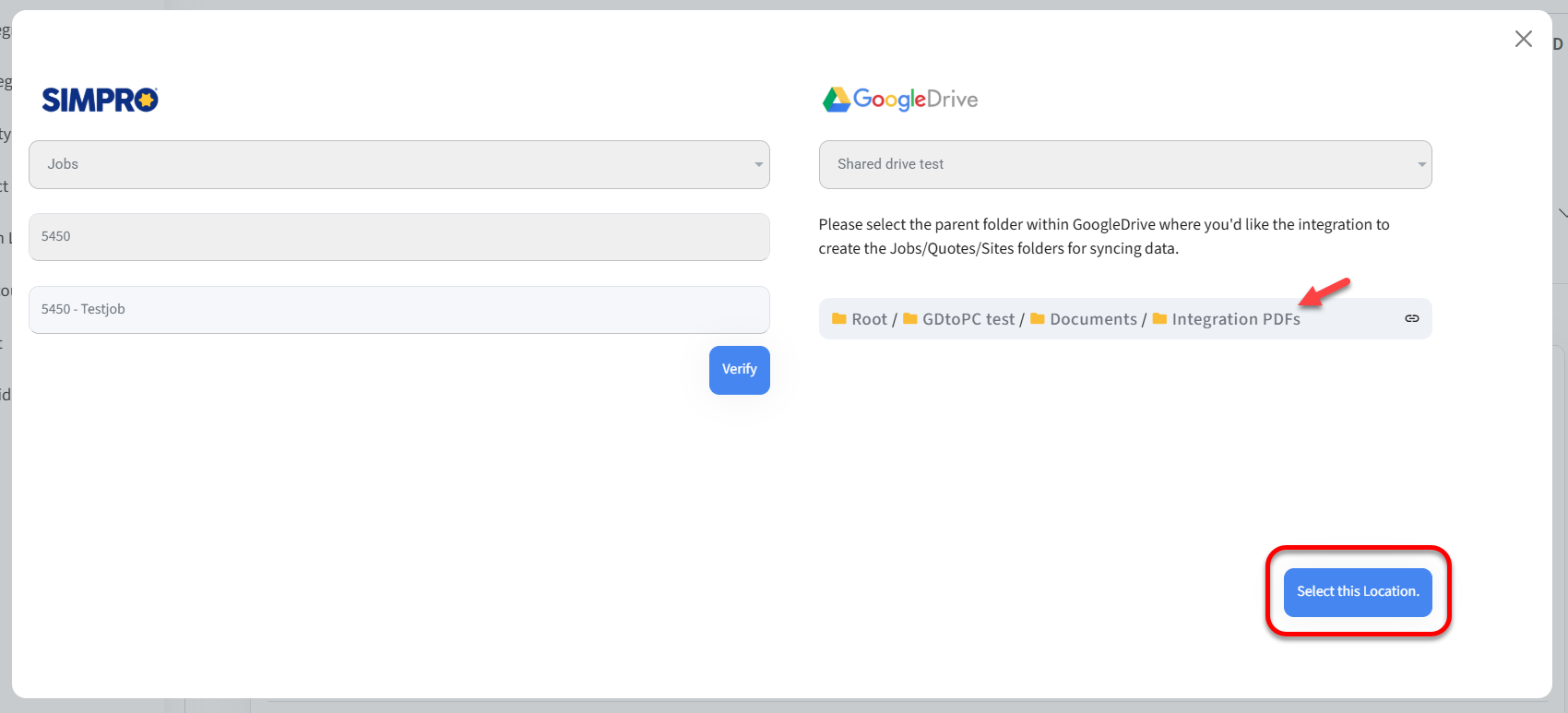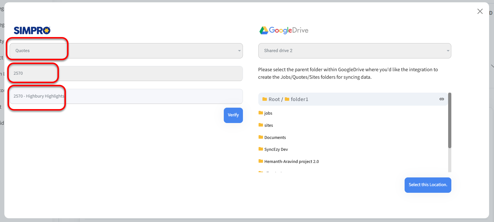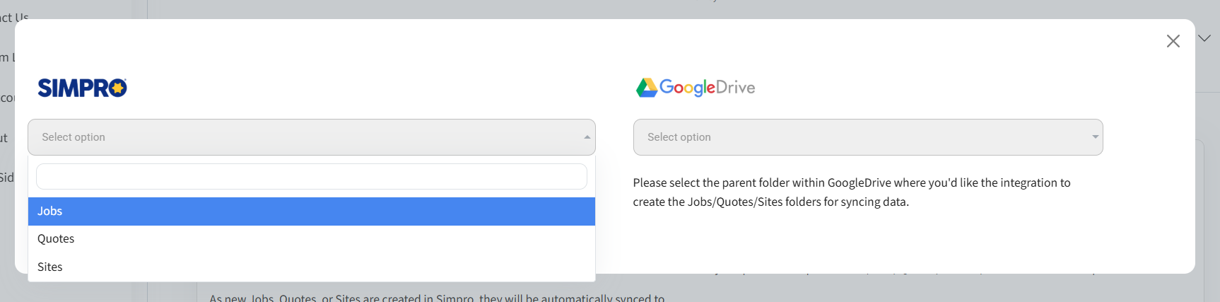 This feature enables you to manually select individual Jobs, Quotes, or Sites from Simpro and sync them to specific folders in Google Drive.