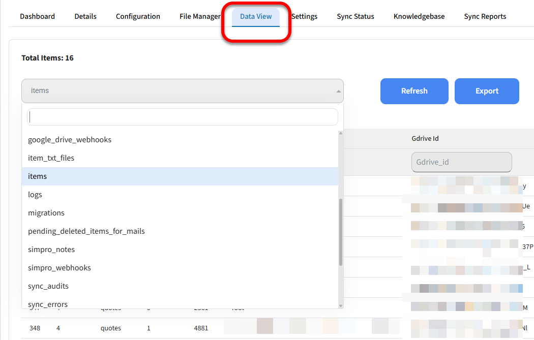 Explore the “Data view” tab to view essential database reports (e.g., sync_queue, folder_and_files).