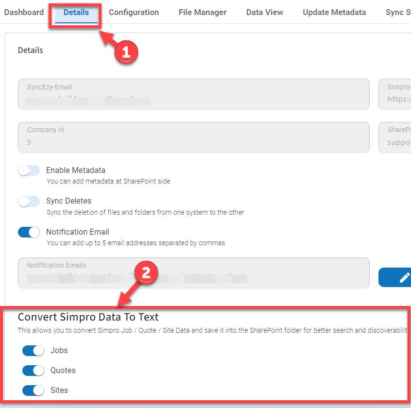 - Enabling this option will send you an email to the SyncEzy-Email about the sync status or any update for sync . We can add up to 5 email addresses separated by commas (,)
