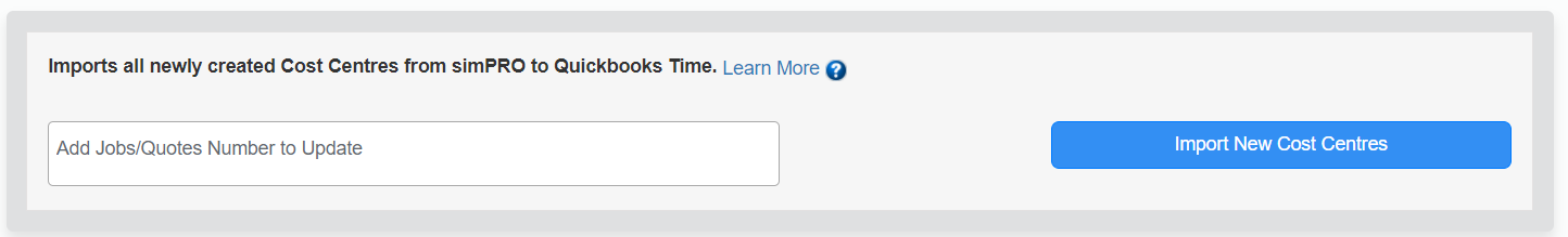 simPRO - QuickBooks Workforce Integration - SyncEzy Portal User Guide - Import New Cost Centres